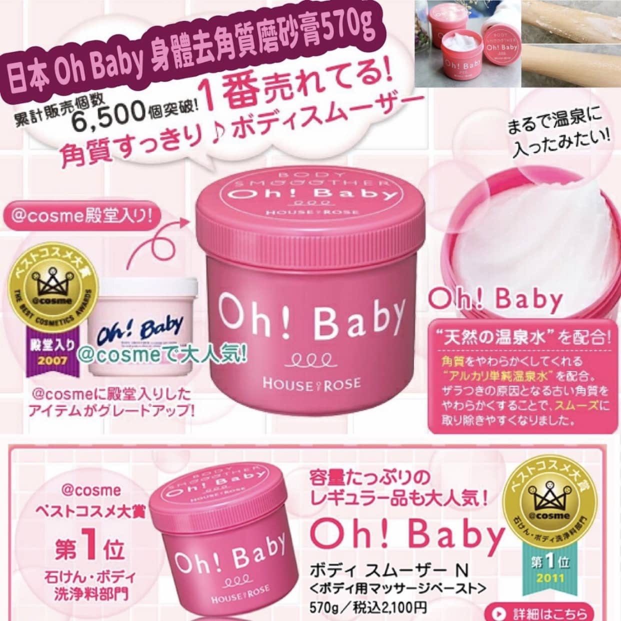 Previous Product Next Product 日本製🇯🇵HOUSE OF ROSE Oh! Baby身體去角質磨砂膏 ~570g $108.00 去除肌膚表面的老廢角質及死皮,瞬間水潤亮澤和透明感的幼嫩肌膚 日本連續3年美體化妝品冠軍🏆得主 是日本鼎鼎有名的一款身體磨砂膏。 日本製🇯🇵HOUSE OF ROSE Oh! Baby身體去角質磨砂膏 ~570g 數量 加入購物車 描述 評價 (0) 描述 日本製🇯🇵HOUSE OF ROSEOh! Baby身體去角質磨砂膏 ~570g 為夏天☀️做好準備,幫肌膚深層清潔🧽用家一致好評超好用👍🏻👍🏻去除肌膚表面的老廢角質及死皮,瞬間水潤亮澤和透明感的幼嫩肌膚💃🏻💃🏻日本連續3年美體化妝品冠軍🏆得主,2007年入cosme殿堂,是日本鼎鼎有名的一款身體磨砂膏。唔似一般磨沙裡面還添加一堆雜七雜八的,導致磨砂濃度很低,呢罐裡幾乎都是磨沙,所以特別重,膏體好厚,需要和水使用。 ❤️呢罐夠實惠,技術含量上可沒馬虎,磨沙個個都能感覺出是圓潤潤的,不會在磨的過程中滑傷皮膚,冲水💦乾淨之後皮膚也特別柔滑,呢款磨砂膏用溫泉水的結晶為主料,添加了蠶絲微粒,磨砂非常細膩,不會傷害嬌嫩肌膚,清除老舊角質,讓皮膚柔軟水潤,充滿透明感。 使用方法:1⃣使用浴液後將磨砂膏挖出少量至於掌中,加點水慢慢調和,塗抹於全身,然後輕輕按摩。2⃣你會感覺到很多細小的沙粒般的磨砂在皮膚上滾動,肌膚隨著磨砂的滾動變得滑膩起來,肘臂膝蓋等部位可重點按摩。3⃣最後用水沖洗全身。手肘,膝蓋等部位可稍微用力按摩。其他部位輕柔打轉按摩。 📌適合所有膚質📌容量:570g📌產地:日本🇯🇵 商品評價 目前沒有評價。 只有註冊並且購買過商品的顧客才能撰寫評價。 相關商品 Quick View Out of Stock Quick View 日本🇯🇵殿堂級Salon專用品牌✨Milbon Deesse’s Hair Treatment 護髮精華焗油✨ $49.00 選擇規格 此產品有多種款式。 可在產品頁面選擇選項 Quick View Quick View 韓國🇰🇷LABEL YOUNG的捲彈造型護髮霜~100ml $109.00 加入購物車 Quick View Quick View 韓國🇰🇷LadyKin膠原蛋白身體乳200ml 買一送一 $88.00 加入購物車 Quick View Quick View 韓國《Masil 9肽免沖洗護髮精華》180ml $75.00 加入購物車