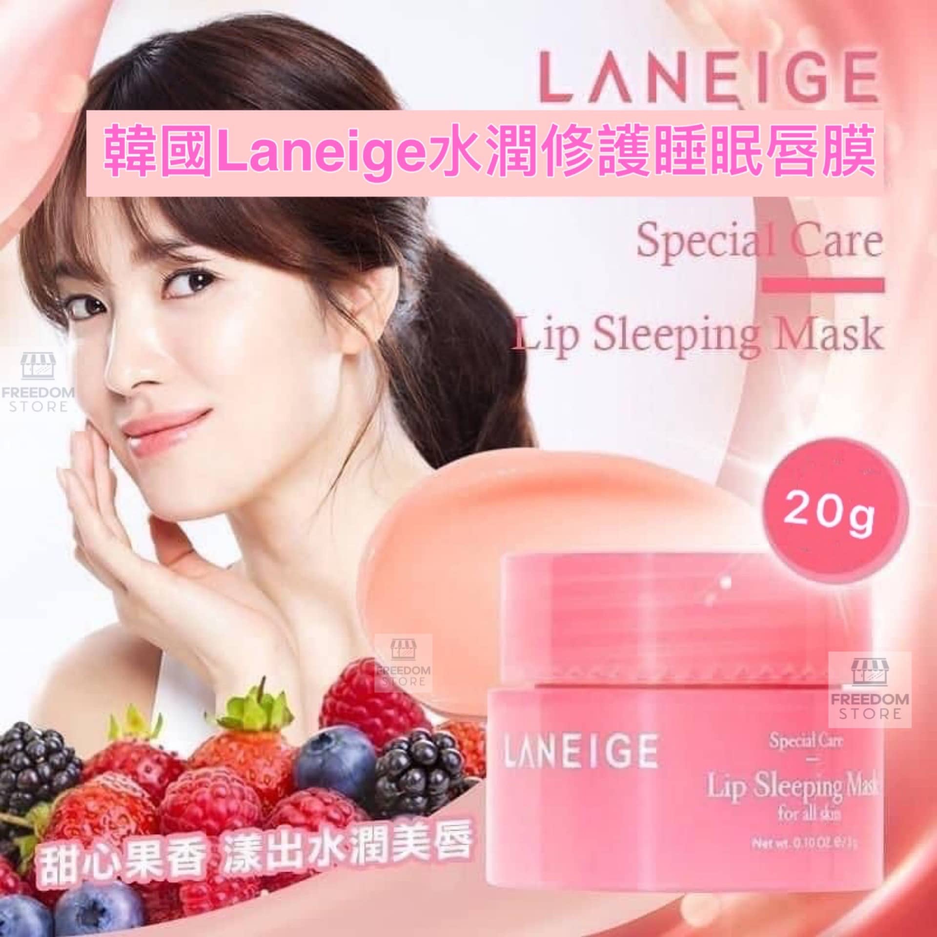 Previous Product Next Product 韓國🇰🇷Laneige蘭芝水潤保濕草莓果凍晚安唇膜~20g $68.00 堪稱為 『 護唇屆的女王👑 』 蘭芝經典款銷售NO.1🔝唇膜👄 韓國🇰🇷Laneige蘭芝水潤保濕草莓果凍晚安唇膜~20g 數量 加入購物車 描述 評價 (0) 描述 韓國🇰🇷Laneige蘭芝水潤修護睡眠唇膜20g 專櫃價$130❌ 堪稱為 『 護唇屆的女王👑 』 蘭芝經典款銷售NO.1🔝唇膜👄 晚上睡覺前😴一晚敷上嘴巴,隔天起床後嘴巴會立刻變得Q彈水嫩💧香甜的草莓味🍓 使用方法 1️⃣睡前用刮勺取適量唇膜,塗上厚厚一層於雙唇。 ✅於夜間去除頑固死皮,為肌膚注入源源不絕的水份。 2️⃣翌日醒來,利用紙巾或化妝棉輕拭唇部。 ✅柔滑雙唇,水嫩飽滿。 產地:韓國🇰🇷 商品評價 目前沒有評價。 只有註冊並且購買過商品的顧客才能撰寫評價。 相關商品 Quick View Quick View 韓國🇰🇷最新推出AHC第九代持久全能眼霜~30ml $78.00 加入購物車 Quick View Quick View 🇨🇿Dermacol神奇遮瑕粉底液 (30g) $99.00 加入購物車 Quick View Quick View 韓國🇰🇷My neck頸部皺紋專用頸膜~(一盒五片) $69.00 加入購物車 Quick View Quick View 韓國🇰🇷superrvital去皺頸霜~30ml $89.00 加入購物車